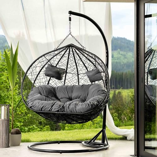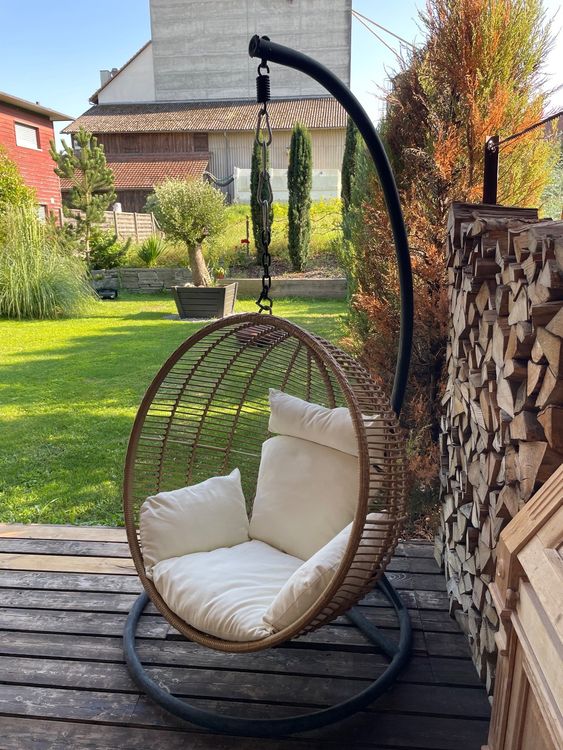 Rattan Hängesessel Outdoor - Garten Schaukelsessel Mit Kissen Für Terrasse