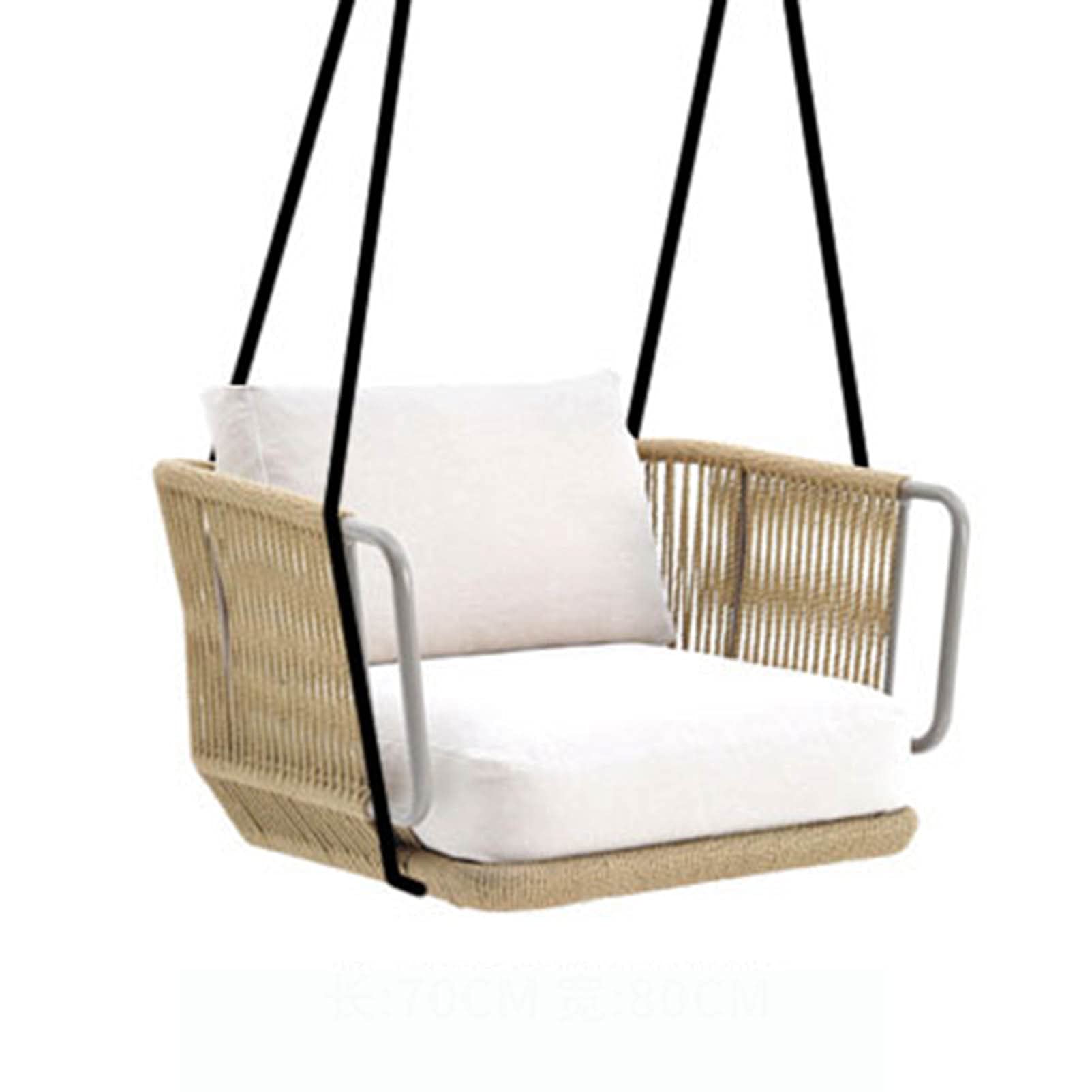 Einfach mal abschalten und entspannen in diesem tollen Rattan-Hängesessel! Perfekt für Garten, Terrasse, Balkon oder Poolbereich. Aus robustem PE-Rattan geflochten mit Aluminium-Verbundrahmen - super stabil und witterungsbeständig. Mit weichen Kissen und Kopfstütze aus Polyester für maximalen Komfort. Der pulverbeschichtete Stahlrahmen bietet hohe Tragfähigkeit und Sicherheit. Maße: 430x700x730mm - ideal für Erwachsene. Einfache Montage mit beiliegender Anleitung - schnell aufgebaut und sofort entspannungsbereit. Das hochfeste Nylonseil sorgt für sanftes Schaukeln ohne wildes Schütteln. Ob alleine oder zu zweit - hier lässt es sich herrlich chillen und die Seele baumeln lassen. Einfach reinstzen, zurücklehnen und den Tag genießen!