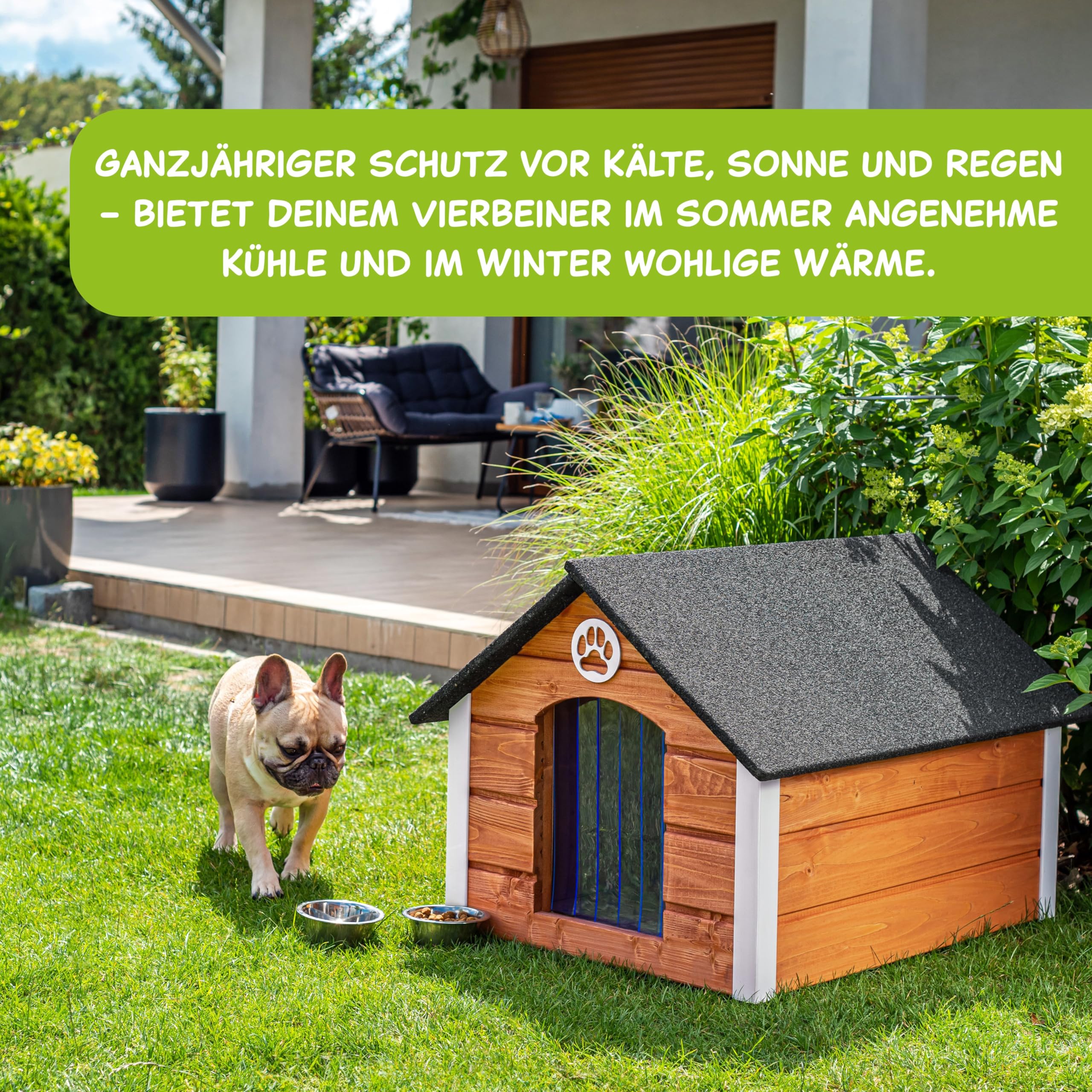Ob für den Dauer-Außenaufenthalt oder als gemütlicher Rückzugsort - diese Hundehütte bietet eurem Vierbeiner ein sicheres und komfortables Zuhause!
