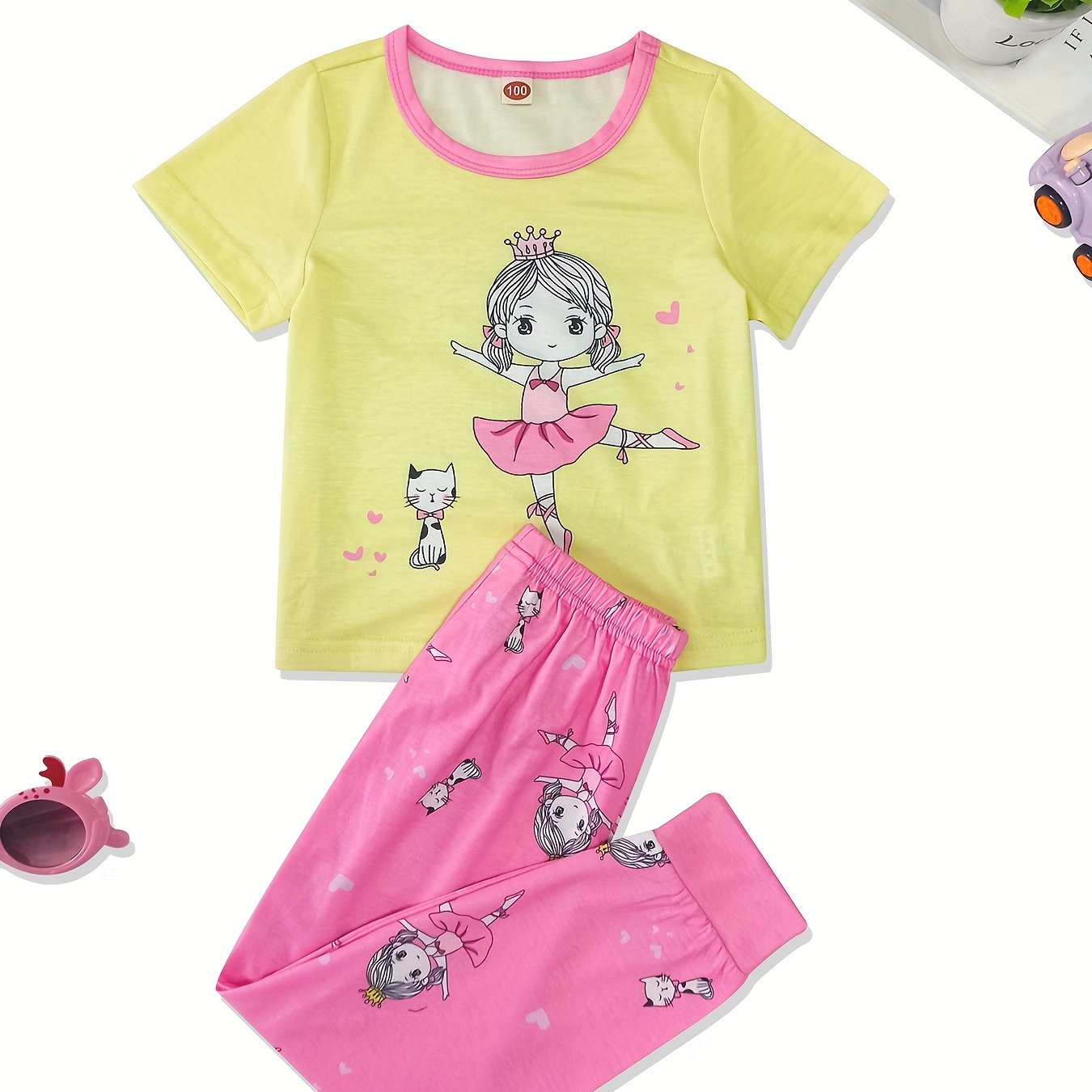 Wow, dieses 2-teilige Outfit ist perfekt für kleine Mädchen im Sommer! Ein lässiges T-Shirt mit süßem Cartoon-Print und eine passende Shorts - einfach anziehen und los geht's! \\n\\nSuper weiches Baumwoll-Material, angenehm auf der Haut und perfekt für warme Tage. Mit Rüschen an den Ärmeln für den extra süßen Look! \\n\\nIdeal für Kindergarten, Spielplatz, Geburtstagsparty oder einfach zum Rumlaufen zu Hause. Das Set gibt's in verschiedenen Farben und für verschiedene Altersgruppen von 3-15 Jahren. \\n\\nPraktisch und stylisch - deine Kleine ist in Sekunden fertig angezogen und sieht trotzdem total niedlich aus! Einfach zu kombinieren und super bequem. \\n\\nHol dir dieses praktische Set und mach deiner Tochter eine Freude - perfekt für den Sommer und alle Gelegenheiten!