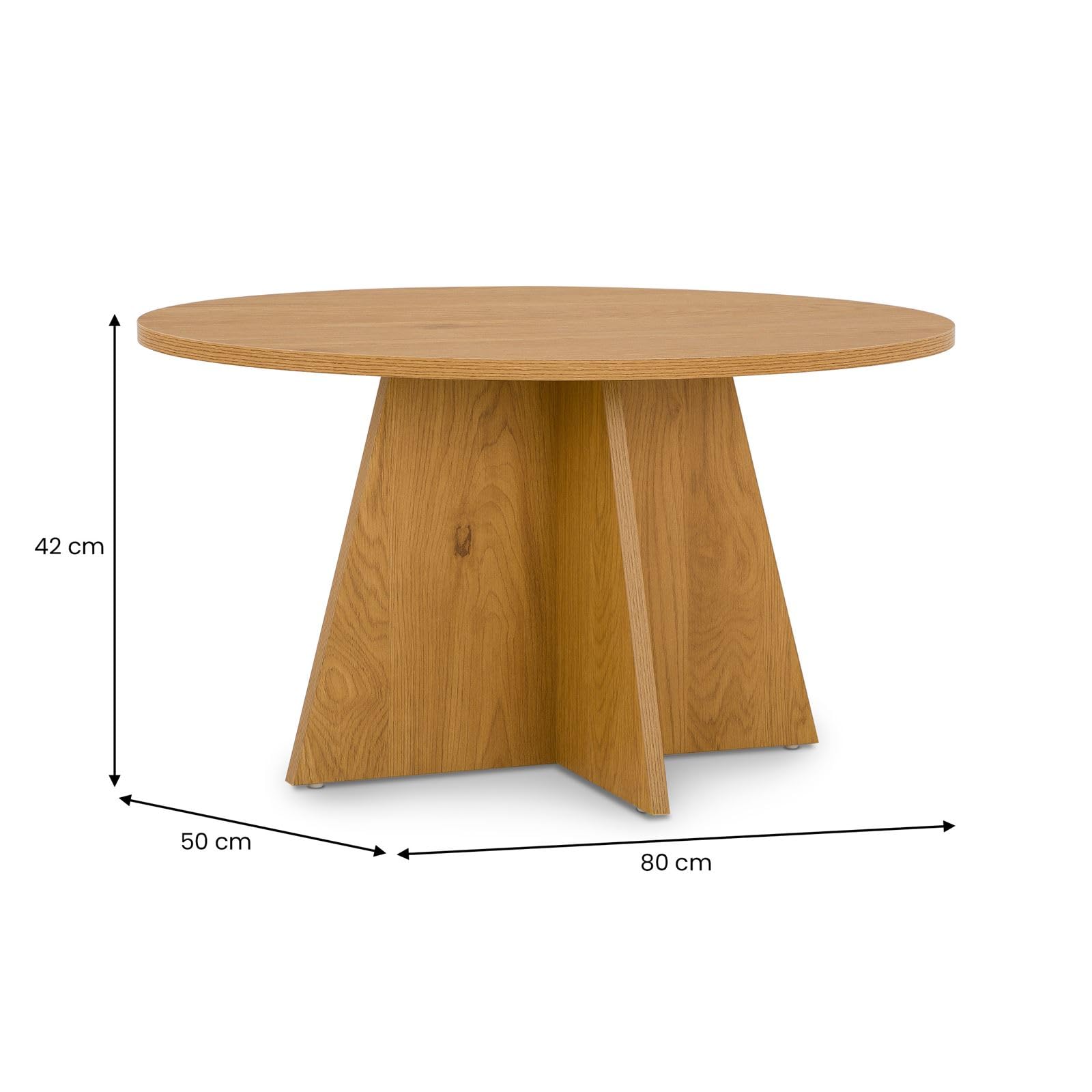 Dieser Couchtisch bringt modernes Design in dein Wohnzimmer! Ovale Form mit stylischen Kreuzbeinen - sieht einfach edel aus. Maße: 80x42x50cm - perfekt als Couchtisch oder Beistelltisch. Aus robustem MDF mit hochwertigem Wildeiche-Dekor - pflegeleicht und langlebig. Die 18mm starke Platte bietet reichlich Stabilität für Getränke, Snacks oder Deko. Einfache Montage mit beiliegender Anleitung - wird zerlegt geliefert. Passt zu jedem Einrichtungsstil und verleiht deinem Wohnzimmer sofort einen warmen, gemütlichen Charakter. Ein echter Hingucker für wenig Geld!