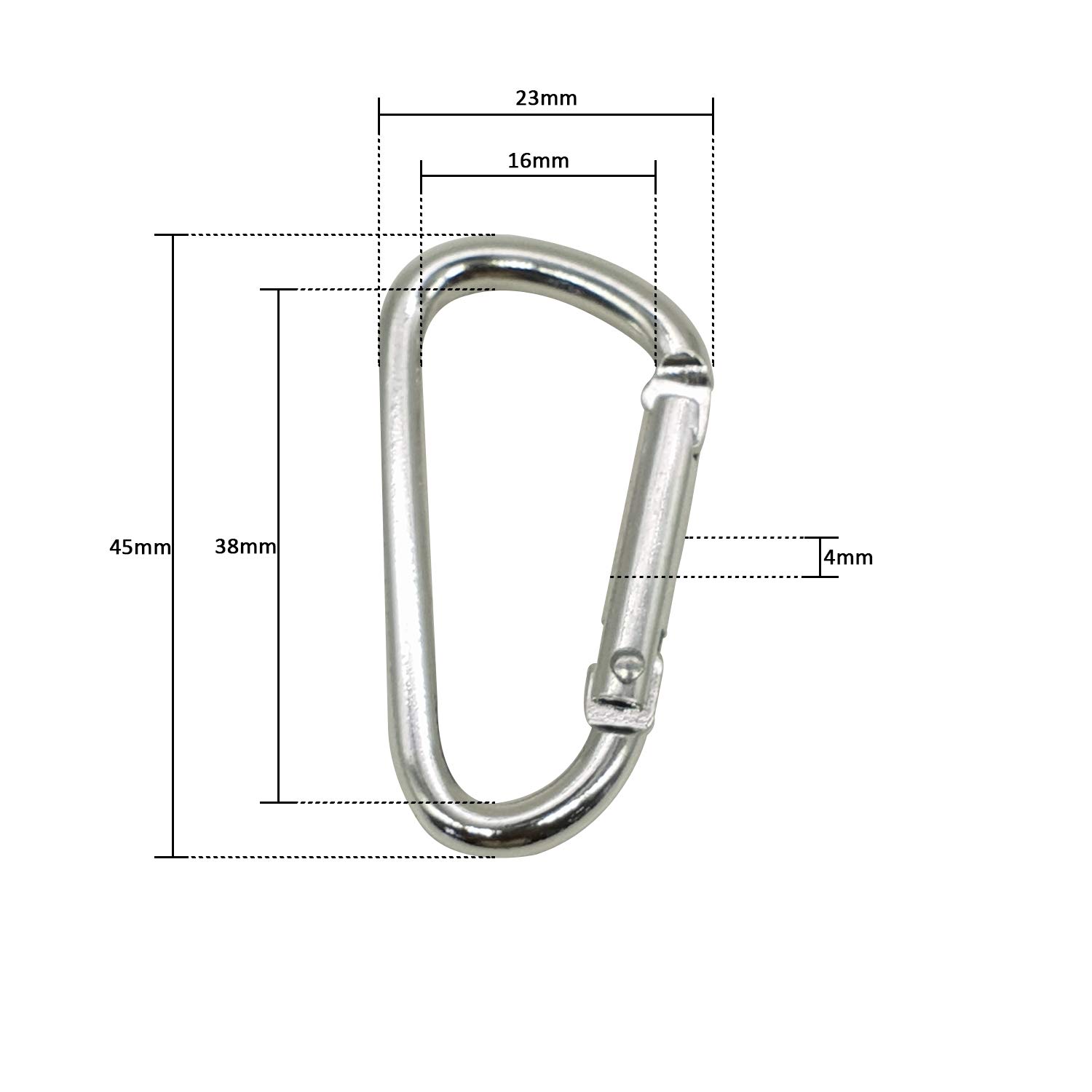 Dieses 8er-Set ovaler Karabiner ist ein echter Allrounder für unterwegs! Aus hochwertiger Aluminiumlegierung in Silber und Hellgold (je 4 Stück). Mit Federverschluss der sicher verschließt und nicht versehentlich aufgeht. Maße: 34x20,5x4,5 mm - der ovale Innenraum bietet Platz für dickere Seile und Gegenstände. Perfekt für Schlüssel, Taschenlampen, Wasserflaschen oder am Rucksack. Leicht, kompakt und mit einer Hand zu bedienen. Ideal für Camping, Wandern, Angeln, Radfahren und andere Outdoor-Aktivitäten. Mit ausreichender Tragkraft und langlebiger Verarbeitung. Ein muss für jeden Abenteurer!