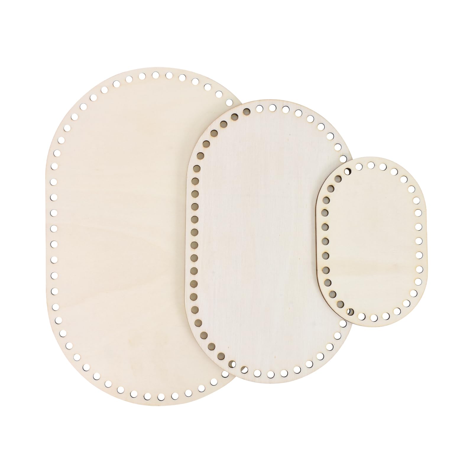Hey du kreative Seele! Mit diesen ovalen Häkelböden aus Naturholz kannst du ganz easy deine eigenen Häkeltaschen und Körbe machen. Das Set hat 7 verschiedene Größen: 18x10cm, 20x12cm, 20x15cm, 25x15cm, 26x17cm, 28x18cm und 30x20cm - also für jedes Projekt die passende Basis! Die Löcher haben 8mm Durchmesser und sind 2,5mm dick - perfekt zum Durchfädeln von dickem T-Shirt-Garn oder geflochtenen Kordeln. Das Holz ist super glatt und hat eine schöne natürliche Textur - bricht nicht so leicht und ist richtig langlebig. Du kannst die Böden sogar nach deinem Geschmack bemalen und personalisieren! Die runden Löcher machen das Weben und Wickeln super einfach - auch für Anfänger absolut geeignet. Und das Beste: Das Seil kannst du entfernen und die Böden wiederverwenden! Egal ob für Einkaufstaschen, Umhängetaschen, Aufbewahrungskörbe oder Garnhalter - deiner Fantasie sind keine Grenzen gesetzt. Auch ein mega Geschenk für alle die gerne basteln und häkeln. Einfach aussuchen, anfangen und staunen was du alles kreieren kannst! Das macht richtig Spaß und die Ergebnisse sehen total professionell aus.