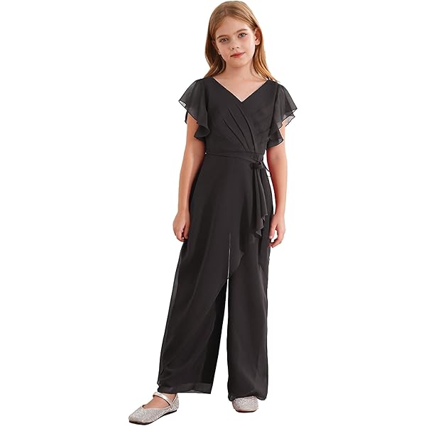 Agoky Mädchen Overall Chiffon - Eleganter Jumpsuit Mit Rüschenärmel Für Sommer & Partys
