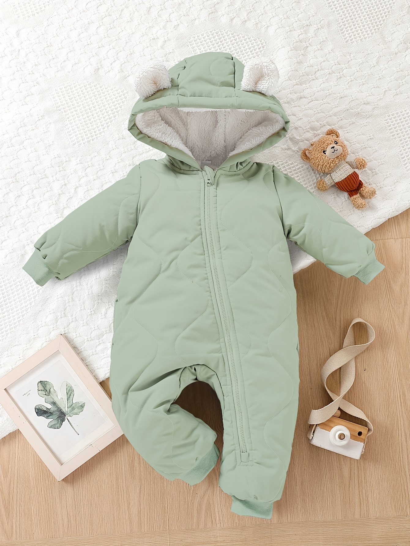 Baby Winter Strampler Mit Kapuze - Warme Fleece Overall Für Jungen & Mädchen | Mit Integrierten Fäustlingen