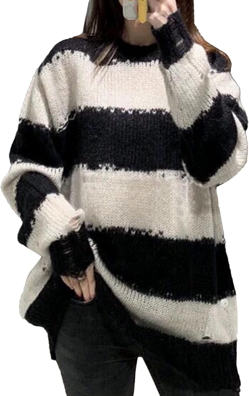 Gothic Punk Strickpullover Für Damen - Oversize Langpullover Mit Zerrissenem Look Für Grunge Style