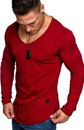Amaci&Sons Oversize Longsleeve Herren - Vintage Sweatshirt Mit V-Ausschnitt