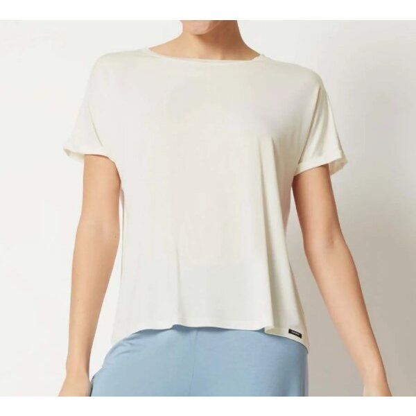 Skiny Damen Pyjama Oberteil Kurzarm - Oversized Mit Spitzen-Applikation, Weicher Bambus Viskose