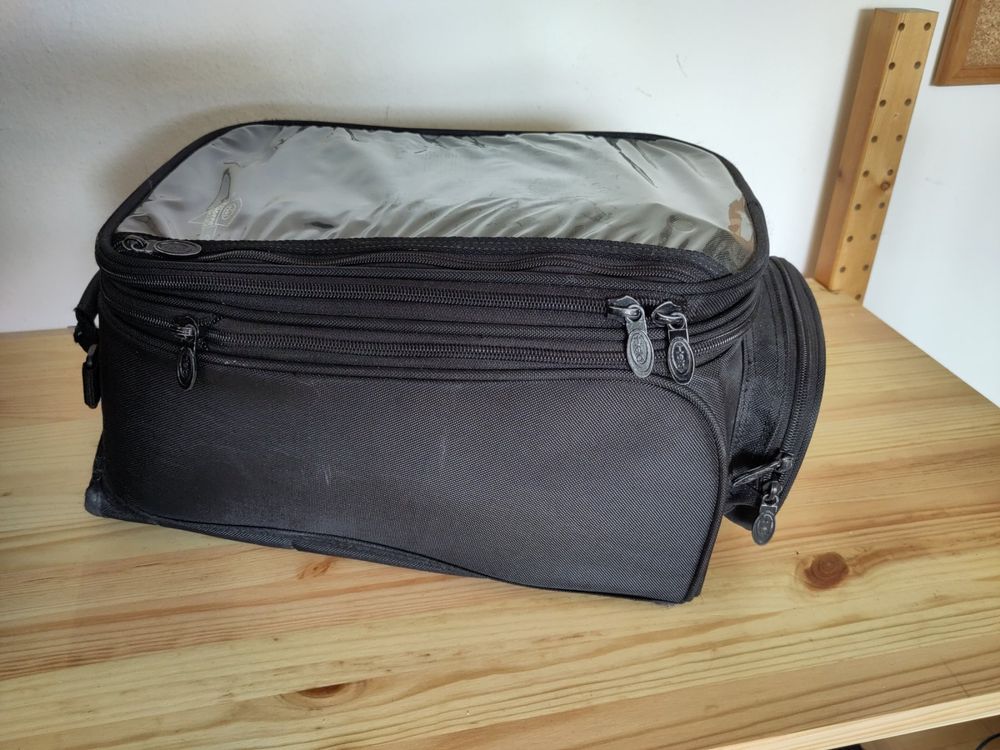 Alles griffbereit auf der Tour! Dieser Motorrad-Tankrucksack aus schwarzem Oxford-Material hält mit starken Magneten sicher am Tank. Mit transparentem Handy-Fach und Kabeldurchführung für Navi oder Ladegerät. Wasserdichter Reißverschluss schützt deine Sachen bei jedem Wetter. Großer Stauraum für Handy, Geldbeutel, Kamera und mehr. Inklusive Netztasche innen für Kleinteile. Passt auf die meisten Motorräder - dein perfekter Begleiter für lange Touren!