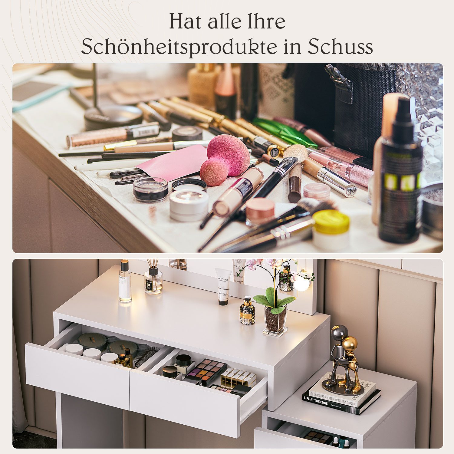 Oyajia Schminktisch Mit LED Spiegel & Hocker - Weiße Frisierkommode 135cm