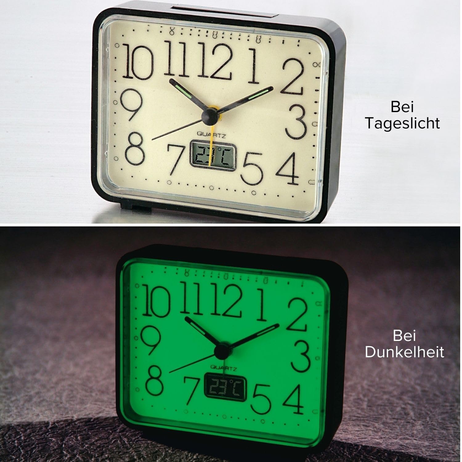 PAGEN Wecker Mit Thermometer - Große Zahlen, Snooze Funktion 10,5x5x8 Cm