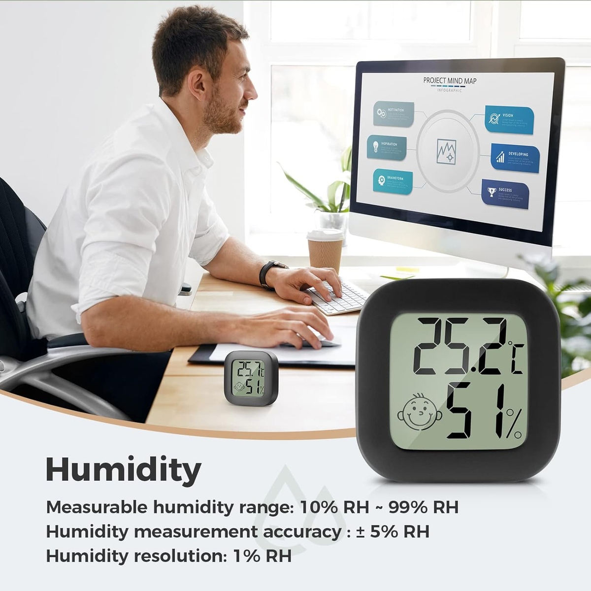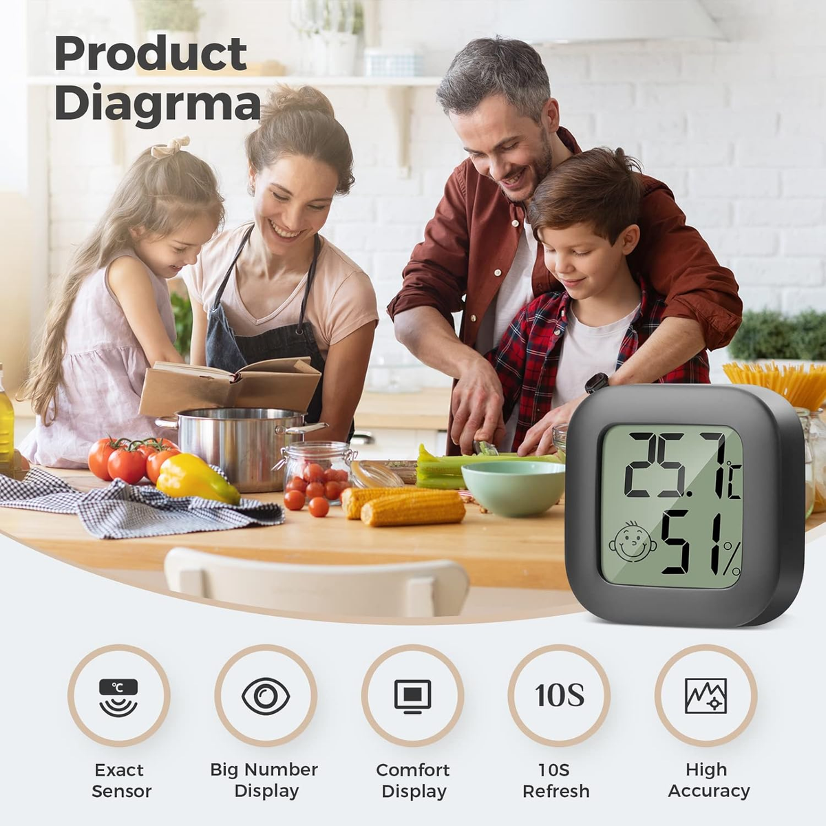 Immer das richtige Raumklima! Dieses PAIRIER Thermometer-Hygrometer Set misst präzise Temperatur und Luftfeuchtigkeit. Temperaturbereich von -50°C bis +70°C mit ±1°C Genauigkeit. Luftfeuchtigkeit von 10% bis 99% RH ±5% Genauigkeit. Großes LCD-Display gut ablesbar. Smiley-Gesichter zeigen Komfortniveau an. Vielseitig aufstellbar oder an Wand montierbar. Perfekt für Gewächshaus, Keller, Büro, Wohnzimmer. Batterie CR2032 nicht im Lieferumfang. Im 2er-Set für mehrere Räume. Einfach platzieren und immer das Raumklima im Blick haben!