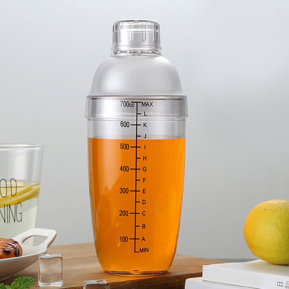 Hey, werd zum Home-Bartender mit diesem praktischen Cocktail Shaker! Aus stabilem PC-Kunststoff gemacht - lebensmittelecht und super leicht. Aber keine Sorge, der ist trotzdem robust und fällt nicht so leicht um. Die polierte Oberfläche glänzt richtig schön und liegt gut in der Hand. Das coole dabei: Die klare Skala hilft dir, die perfekten Mengen abzumessen. So werden deine Cocktails und Drinks immer gleich lecker! Es gibt verschiedene Größen zur Auswahl: 350ml, 530ml, 700ml oder 1000ml - je nachdem ob du solo genießt oder für ne ganze Runde mixst. Die dreiteilige Konstruktion ist absolut dicht - da läuft nichts aus beim Schütteln. Einfach zusammenstecken, Zutaten rein, schütteln was das Zeug hält - und fertig ist dein Lieblingsdrink! Perfekt für deine Home-Bar, aber auch für Milchtee-Läden oder Restaurants geeignet. Leicht zu reinigen und sieht dazu noch stylisch aus. Hol dir den Shaker und überrasche deine Gäste mit professionellen Mixgetränken!