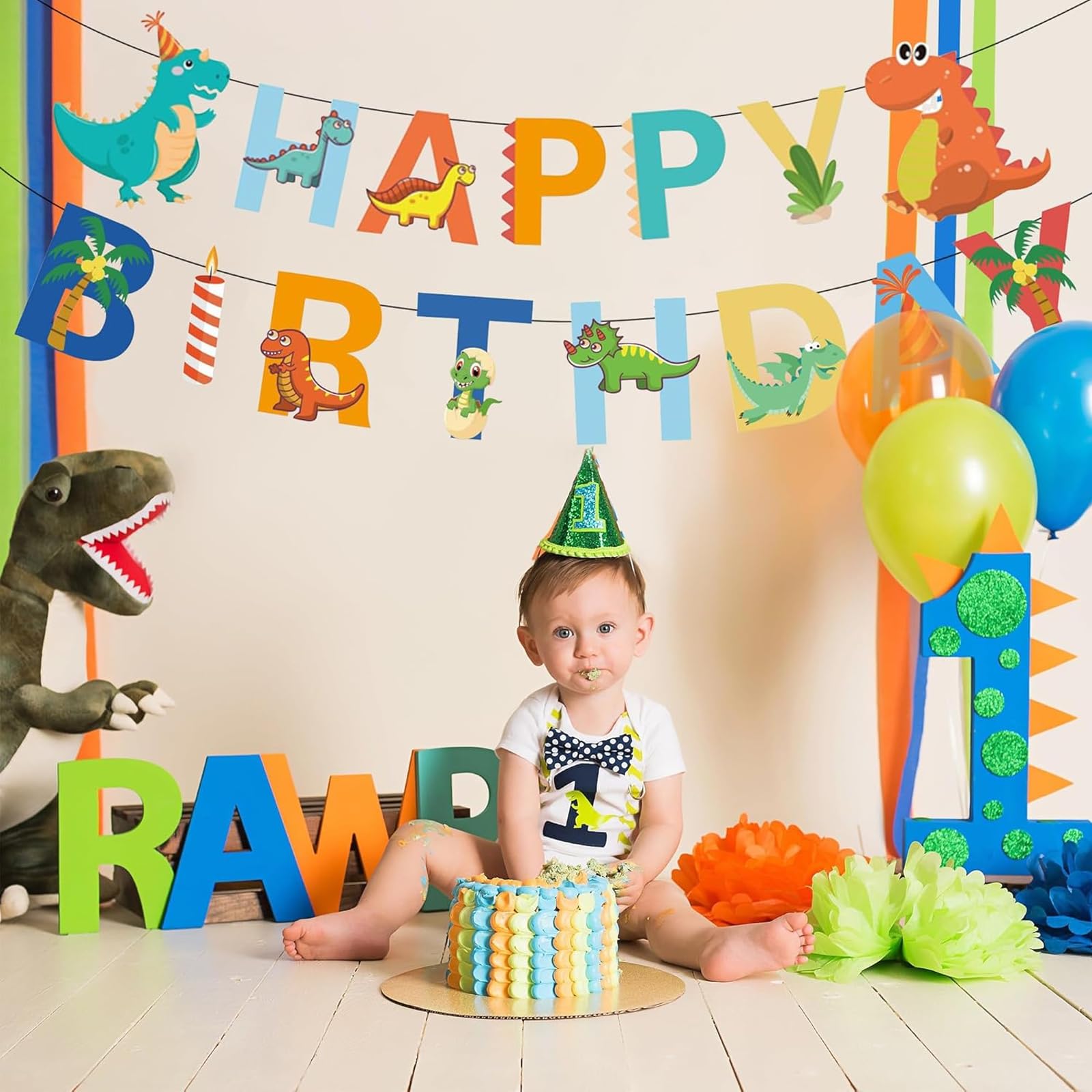 PD-Party Dino Geburtstagsgirlande - Happy Birthday Banner 250cm, Bunt, Für Kindergeburtstag Dino-Party