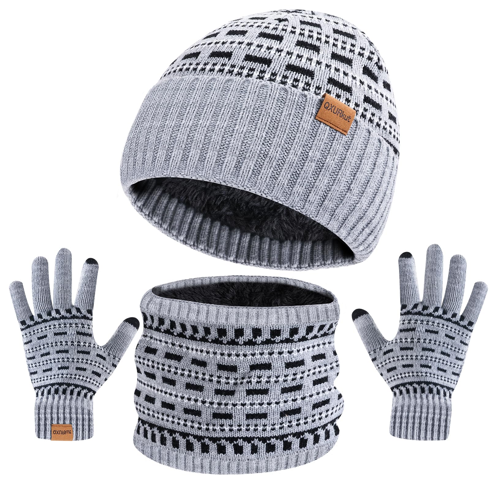 PERFETSELL Wintermütze Set Grau - Beanie, Loop Schal & Touchscreen-Handschuhe Für Damen & Herren