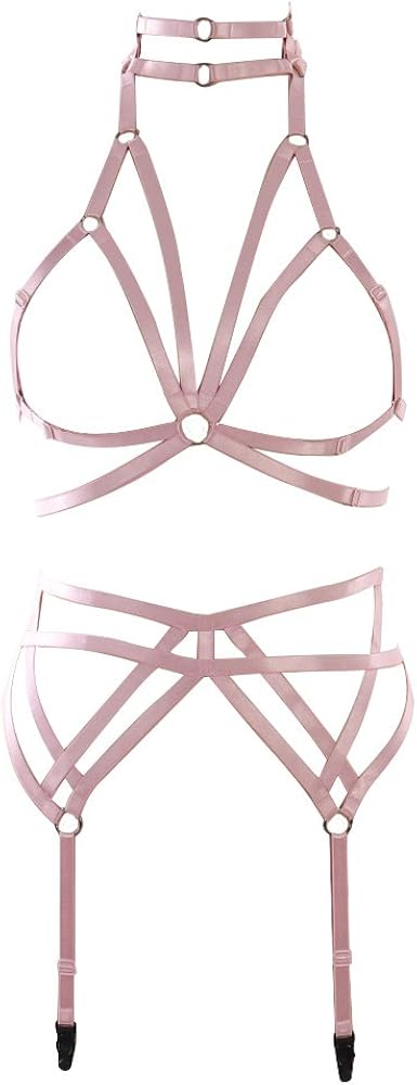 PETMHS Damen Harness Strumpfhalter - Elastischer Körperkäfig Mit Punk Design (Größe S-XXL, Schwarz)