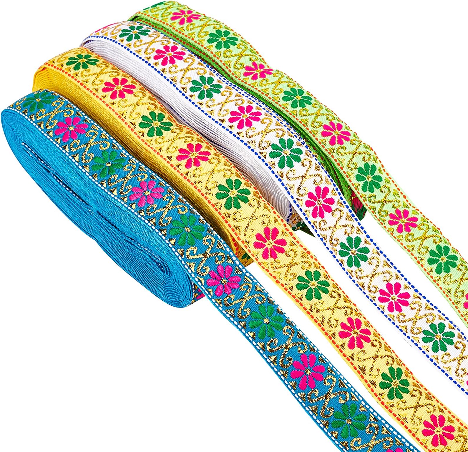 PH PandaHall Jacquard-Bordürenband 10m - Blumenstoff Für Nähen & Basteln