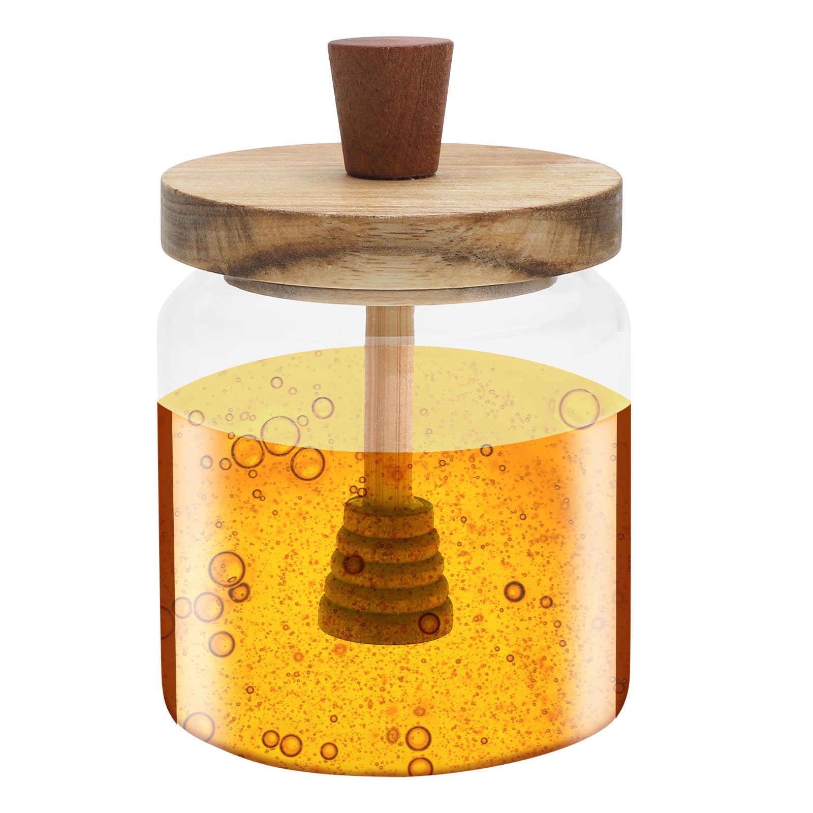 PHMING Honigspender Set - 2x 400ml Glas Mit Holzdeckel & Löffel