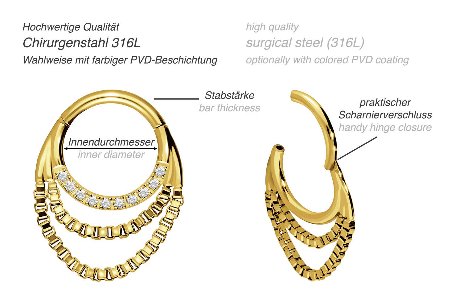 PIERCINGLINE Chirurgenstahl Clicker - Septum Piercing Mit 11 Kristallen