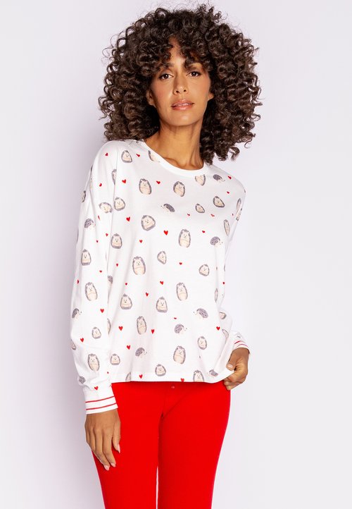 Time to dance - zumindest im Traum! Dieses super süße Pyjamaoberteil von PJ Salvage wird deine neue Lieblings-Loungewear. Mit dem niedlichen 'Let's Dance' Print, der einfach gute Laune macht. Aus kuschelig weichem Peachy-Jersey gefertigt - fühlt sich an wie eine Umarmung! Perfekt für gemütliche Abende auf der Couch, zum Schlafen oder einfach zum Relaxen. Die bequeme Passform gibt dir maximale Bewegungsfreiheit - ob du nun wirklich tanzt oder nur so tust! Super kombinierbar mit verschiedenen Hosen oder sogar als Oberteil für lässige Looks. PJ Salvage steht für Qualität und tolles Design - da machst du nichts verkehrt. Einfach anziehen, entspannen und den Tag ausklingen lassen. Ob alleine zu Hause oder für Übernachtungen bei Freunden - mit diesem Pyjama bist du immer perfekt gekleidet für Gemütlichkeit!