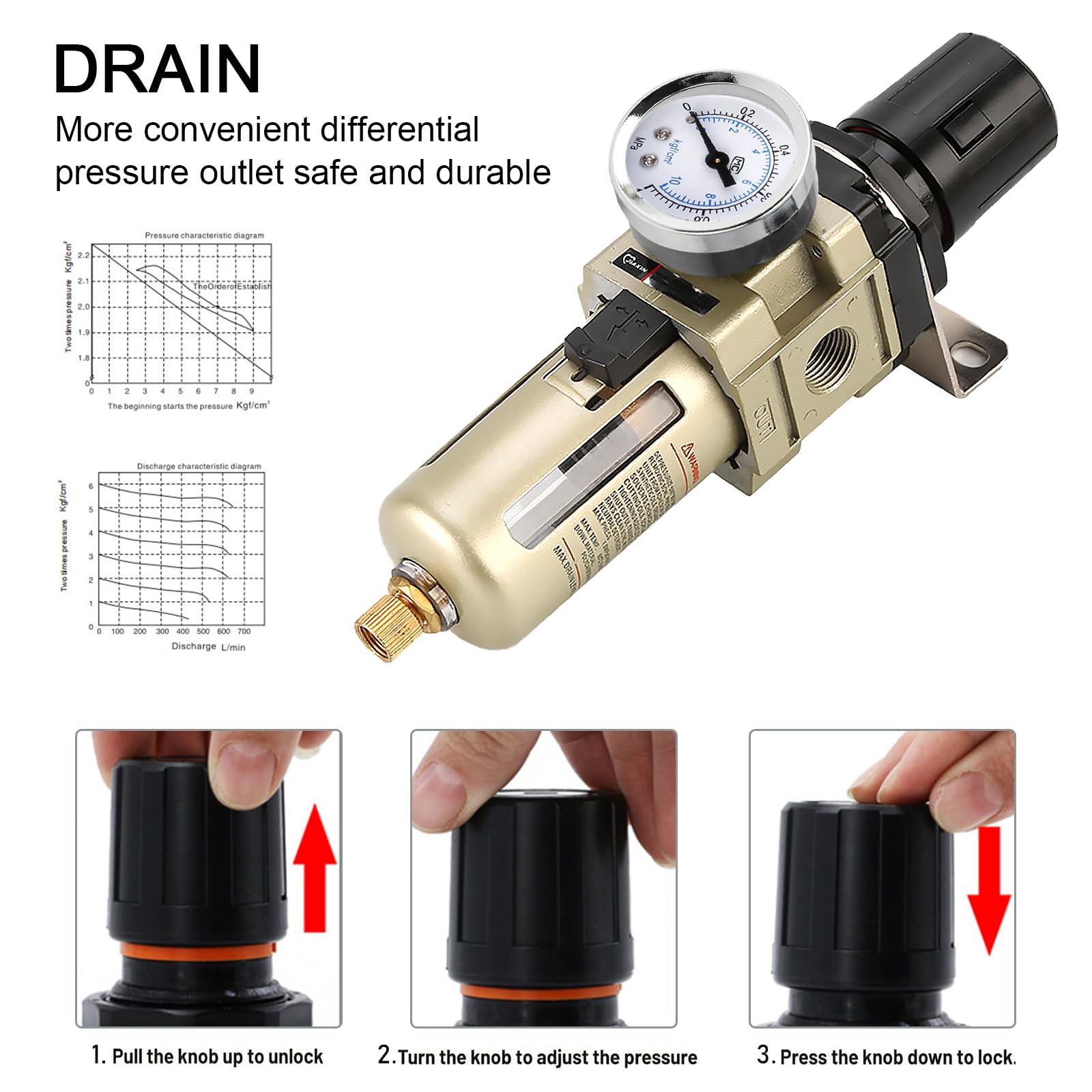 Profis und Hobby-Handwerker - saubere Druckluft ist essentiell! Dieser PORFOYO Wasserabscheider mit Druckminderer liefert sie dir! 3/8 Zoll Anschlüsse für universelle Kompatibilität. Filtert Feuchtigkeit und Partikel bis 5μm heraus - schützt deine Werkzeuge! Einstellbarer Druckbereich 0,05-1,0MPa - perfekt für jede Anwendung. Mit praktischer Schnellkupplung - einfach anzuschließen! Aus Aluminiumlegierung - robust und korrosionsbeständig. Bis zu 3000 L/min Durchflussmenge - Power für alle Arbeiten! Ob in der Werkstatt, auf der Baustelle oder im Hobbykeller - mit diesem Teil hast du immer trockene, saubere Luft! Hol dir den zuverlässigen Wasserabscheider - deine Werkzeuge werden es dir danken!