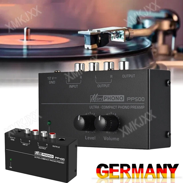 Perfekter Sound für deine Plattensammlung! Der Kliplinc PP500 Phono Vorverstärker bringt deine Vinyl-Platten richtig zum Klingen. Ultrakompakt mit nur 10,3x5,7x3cm - passt überall hin. Mit Lautstärkeregler für die perfekte Lautstärke. 2x RCA Eingänge und Ausgänge plus 1x 1/4 TRS-Ausgang - super flexibel. Für 100-240V Spannung - weltweit einsetzbar. Aus Metall gehäuse - robust und langlebig. Einfach zwischen Plattenspieler und Verstärker anschließen - schon hast du kristallklaren Sound. Ideal für Hi-Fi Anlagen oder Heimkino-Systeme. Macht aus deinem Plattenspieler ein echtes Klangwunder! Einfach anschließen und von der verbesserten Klangqualität überrascht sein. Für alle Vinyl-Liebhaber die das Beste aus ihren Platten herausholen wollen!