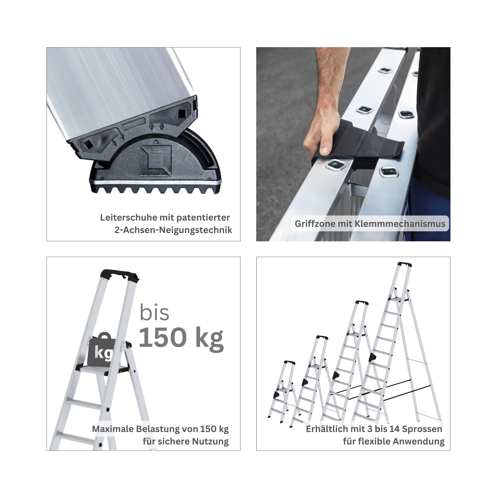 Hey, diese PROREGAL Sprossen-Schiebeleiter ist echt ein Allrounder für alle, die sicher und bequem in die Höhe müssen! Ob im Haushalt oder auf der Baustelle – die Leiter aus stabilem Aluminium hält bis zu 150 kg aus und lässt sich von 2500 mm auf 4080 mm ausziehen. Mit den rutschfesten, geriffelten Sprossen (30x30 mm) und den nivello-Leiterschuhen steht sie bombenfest. Perfekt auch für höhere Einsätze bis 5,2 m Arbeitshöhe – aber Achtung: Über 3 Meter bitte nur mit Traverse oder sicherer Befestigung nutzen! Die Oberleiter hat praktische Wandlaufrollen, und die 4-fach gebördelten Verbindungen sorgen für extra Stabilität. Made in Germany, langlebig und mit Ersatzteilgarantie. Ideal für Handwerker, Hausmeister oder ambitionierte Heimwerker, die Wert auf Sicherheit und Qualität legen!