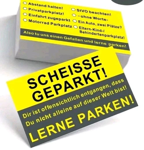 Du hast die Nase voll von Falschparkern? Mit diesen witzigen Falschparker-Karten von PROVISO TOOLS kannst du deinem Ärger auf humorvolle Weise Luft machen! Das Set enthält 50 Karten im Design eines 50€-Scheins mit frechen Sprüchen wie 'Verarscht - Das Geld hat wohl damals in der Fahrschule gefehlt'. Die Karten sind aus robustem 350g/m² Papier und cellophaniert, damit sie auch bei Regen nicht kaputt gehen. Einfach an die Windschutzscheibe des Falschparkers klemmen und schon hast du deine Message hinterlassen - ohne Aggression, aber mit viel Humor! Die handliche Größe von 85x55 mm passt in jedes Portemonnaie, sodass du die Karten immer dabei hast. Perfekt als Geschenk für Autofans oder für alle, die sich über 'Parkdeppen' ärgern. Die Karten kommen in einem praktischen ZIP-Beutel, damit sie immer griffbereit sind. So macht Ärgern über Falschparker endlich Spaß!