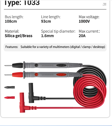 PT1031 Multimeter Messleitungen 1000V 20A - Testkabel Mit Nadelspitzen 103 Cm