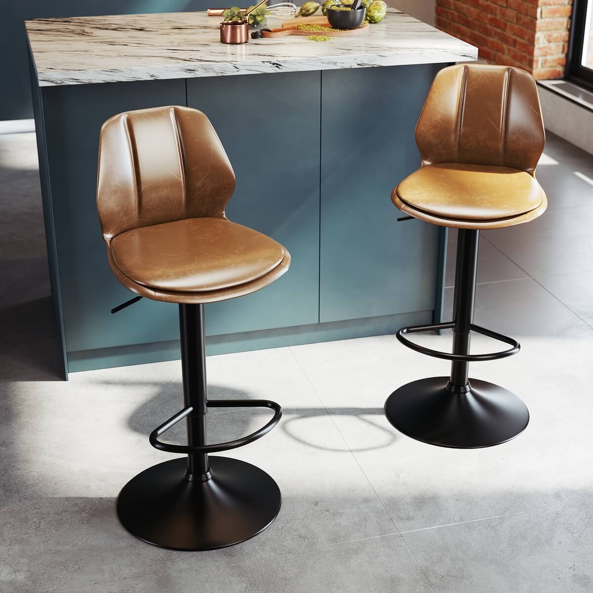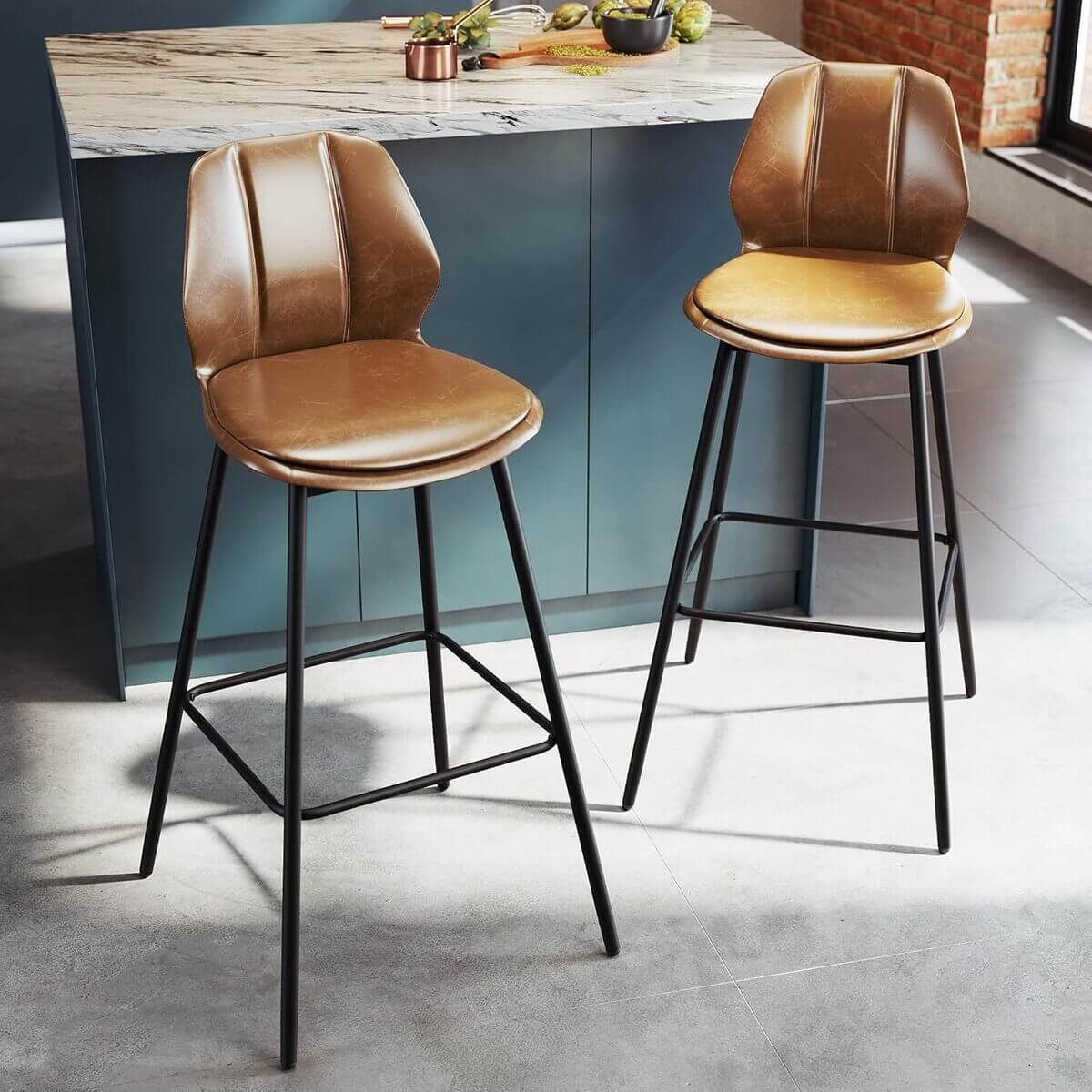 YOPOIY Barhocker Bezüge - Wasserdichte PU-Leder Hussen 2er Set In Khaki