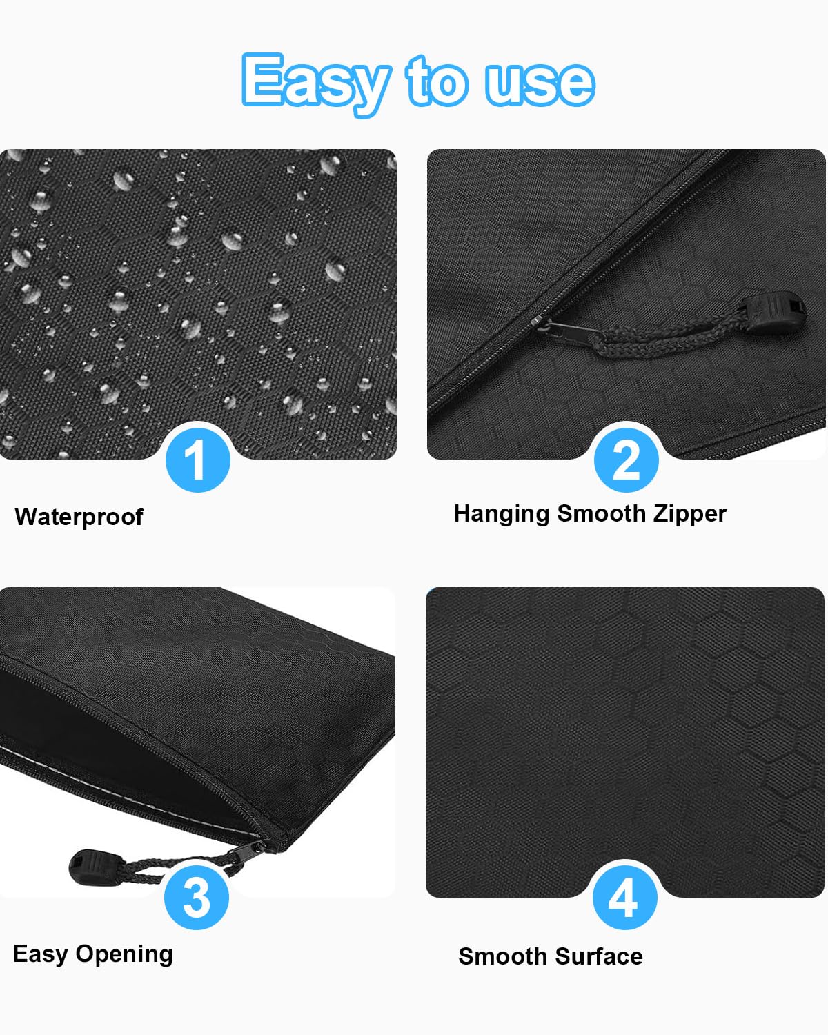 Ordnung für deine Wertsachen! Dieses 6er Set mit A5 Geldtaschen aus robustem PU-Material ist perfekt für Bargeld, Dokumente, Karten und mehr. Der starke Metallreißverschluss sorgt für Sicherheit, während das wasserdichte Material vor Feuchtigkeit schützt. Mit 18x24cm Größe passt alles rein, was wichtig ist. Ideal für Schule, Reisen, Büro oder zu Hause. Die schlichte, elegante Optik in Schwarz sieht immer gut aus und schützt deine Privatsphäre. Einfach reinlegen, zuziehen und sicher verwahren - so behältst du immer den Überblick!