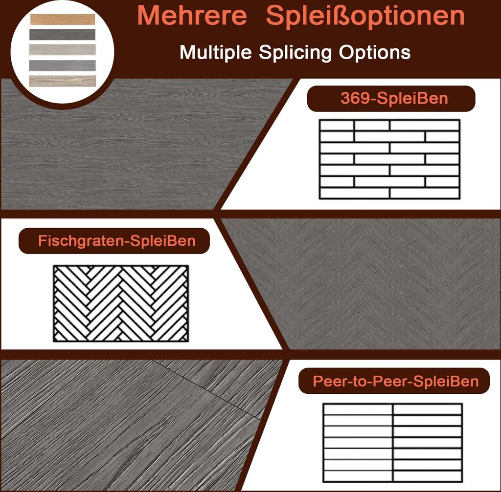 Verlege deinen neuen Boden ganz ohne Kleber! Diese selbstklebenden PVC-Fliesen im Night Oak Design sehen aus wie echtes Holz. 70 Fliesen für 10m² Fläche, je 91,5x15,2cm groß und 1,5mm stark. Super einfach zu verlegen - einfach Schutzfolie abziehen und aufkleben. Wasserdicht und pflegeleicht - perfekt für Küche, Bad, Keller. Auch für Fußbodenheizung geeignet! Die Holzoptik ist täuschend echt und fühlt sich weich an. Einfach zuschneiden für Ecken und Kanten. Spare Zeit und Geld bei deiner Renovierung! Kein Profi nötig - mach es einfach selbst. Die kratzfeste Oberfläche hält lange. Einfach wischen und schon ist der Boden sauber. Mach deine Räume gemütlich mit diesem tollen Bodenbelag! Einfach praktisch und sieht super aus!