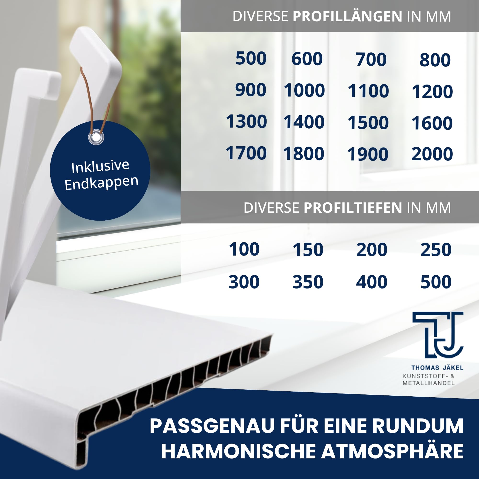 TJ Fensterbank Aus PVC Mit Marmoroptik - 20x80cm Inkl. Seitenabschlüsse