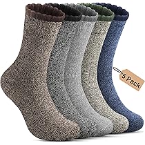 Kuschelig warme Füße garantiert! Dieses 5er-Pack Merino-Wollsocken von SIMIYA ist super dick (2x dicker als normale Socken) und hält auch bei frostigen Temperaturen warm. Material: Merinowolle, Nylon, Elasthan - atmungsaktiv, feuchtigkeitsregulierend und weich ohne zu kratzen. Passend für Größe 39-46, ideal als Crew-Socken, Stiefelsocken oder für Outdoor-Aktivitäten. Ein Must-Have für den Winter!
