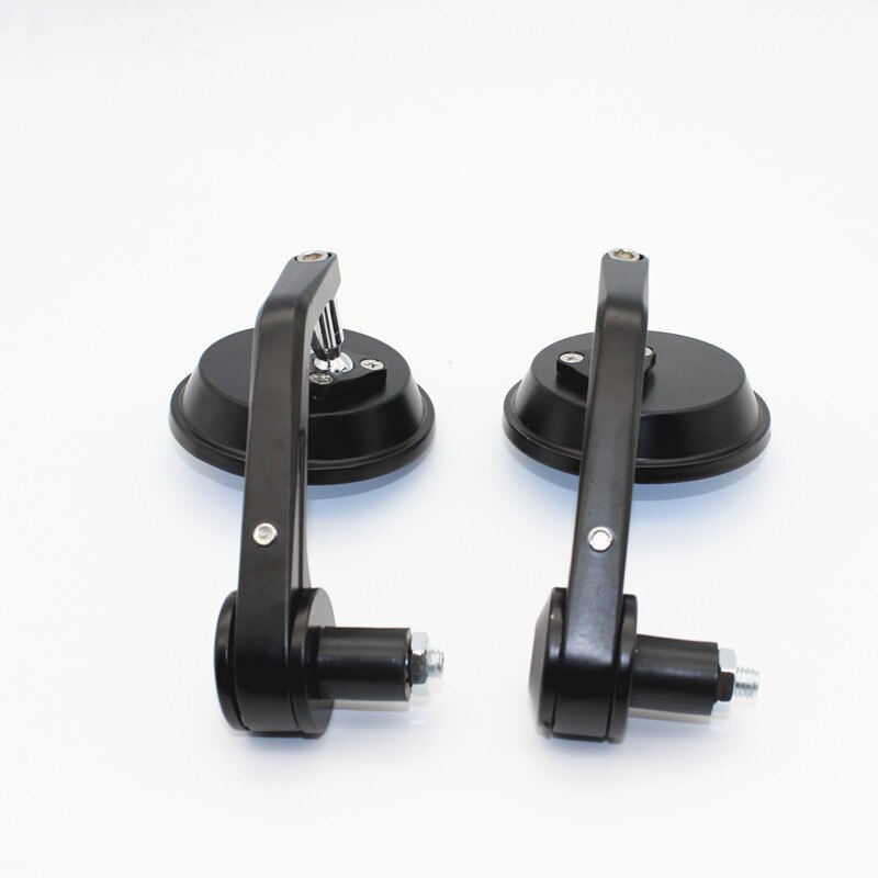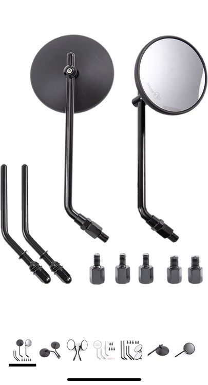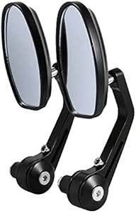 Diese schwarzen Lenkerendenspiegel geben deinem Motorrad einen sportlichen Look und mehr Sicherheit! Die Spiegel sind komplett aus Aluminiumlegierung gefertigt und haben ein großes Glas (9,7 x 4,8 cm) für beste Sicht. Das Besondere: Sie lassen sich um 360° drehen, sodass du den perfekten Winkel für deine Sitzposition einstellen kannst. Sie passen auf 7/8 Zoll (22 mm) Lenkerenden mit Standard-Einsätzen. Die Halterung ist etwa 13 cm lang - ideal für eine gute Übersicht. Im Vergleich zu klobigen Rundspiegeln haben diese Spiegel weniger Windwiderstand und sehen einfach stylischer aus. Das klare Glas bietet auch nachts gute Sichtverhältnisse. Einfach montieren, Winkel einstellen und schon bist du sicherer unterwegs. Ein Paar Schwarz - für mehr Style und Sicherheit auf deinen Touren!