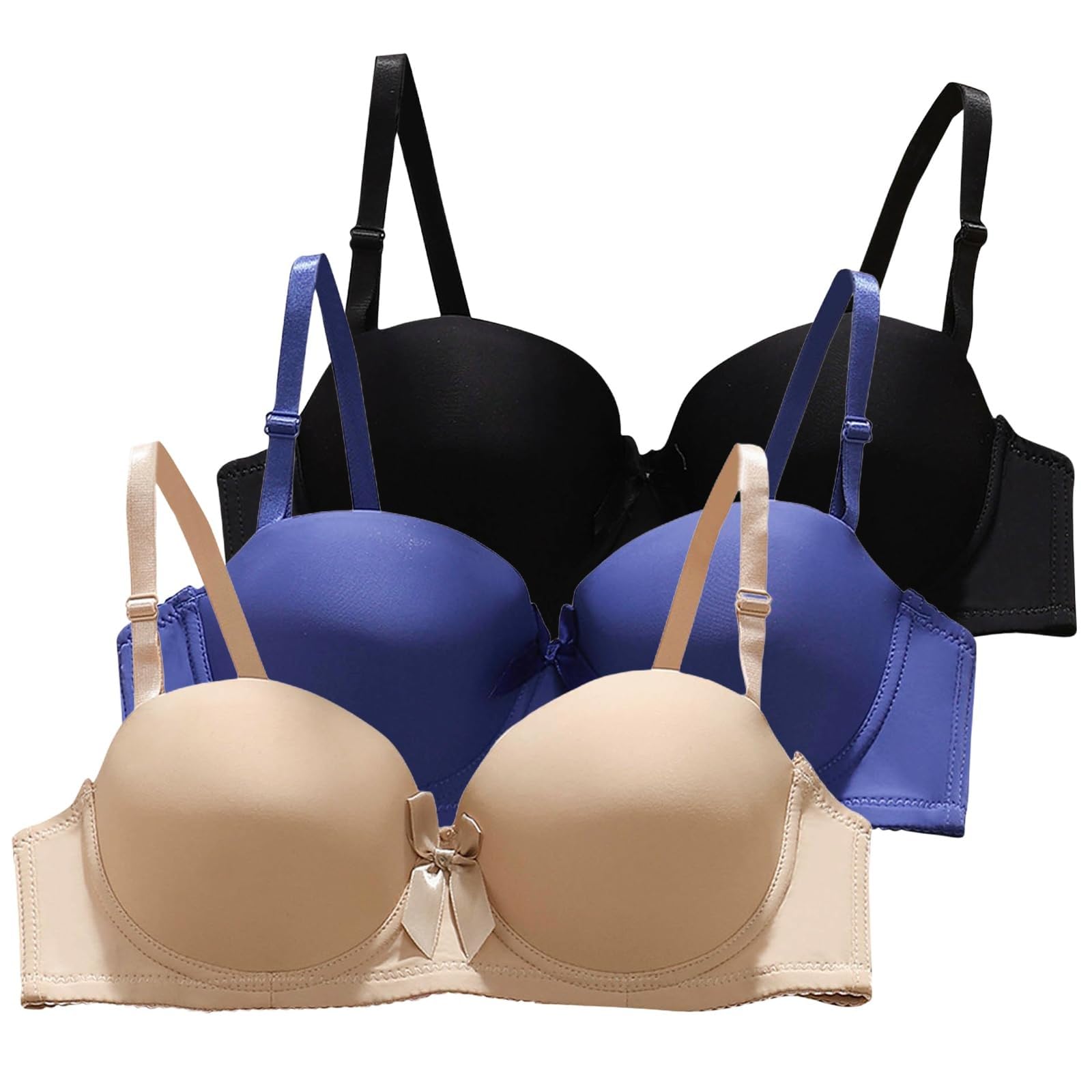 Sport BH 3er Pack Damen - Bügelloser Alltags-BH Mit Push-Up, Weich & Atmungsaktiv