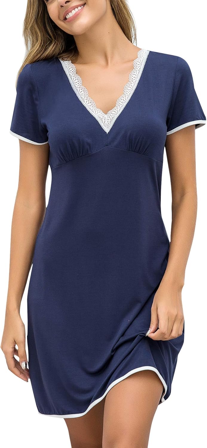 Ekouaer Damen Nachthemd 2er Pack - Langarm Schlafhemd Mit Spitze & V-Ausschnitt