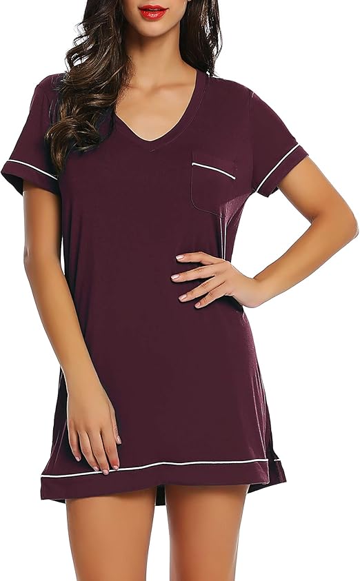 Ekouaer 2er Pack Nachthemden Damen - Kurzarm Schlafshirts Mit V-Ausschnitt