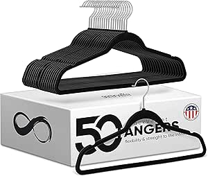 Schrank-Helden Kleiderbügel 50er Pack - Schwarze Platzsparende Bügel Mit Drehhaken Aus 100% Recyceltem Material