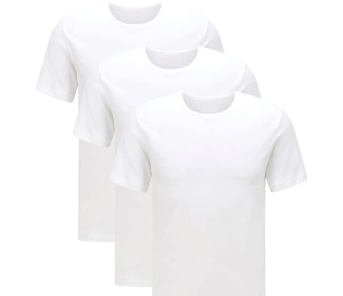 Herren T-Shirts 3er Pack Weiß - Mit S-Stick Basic Baumwolle