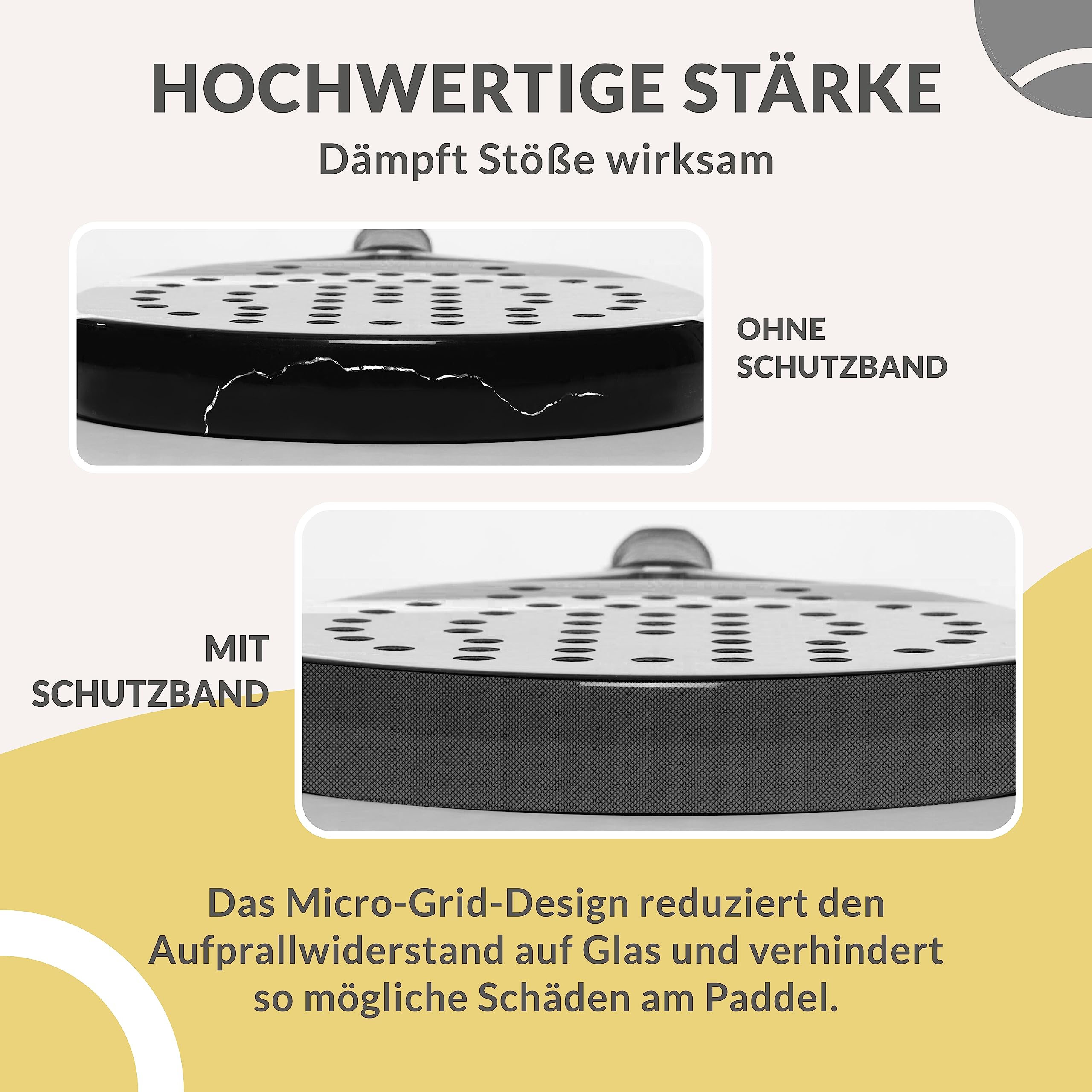 Hey Padel-Fans! Diese transparenten Schlägerschützer von JJ LMS sind echt praktisch. Du kriegst 3 Stück plus Aufkleber - perfekt um deinen teuren Schläger vor Kratzern und Abnutzung zu schützen. Mit 35x370mm passen sie super auf den Schlägerrahmen und die raue Oberfläche bietet extra Schutz. Super flexibel, leicht und verändern nicht das Spielgefühl. Einfach anbringen und dein Schläger bleibt länger wie neu! Ob du Anfänger oder Profi bist - dieses Set verlängert definitiv die Lebensdauer deines Equipments. Die Aufkleber (55x55mm) geben dem ganzen noch den letzten Schliff!