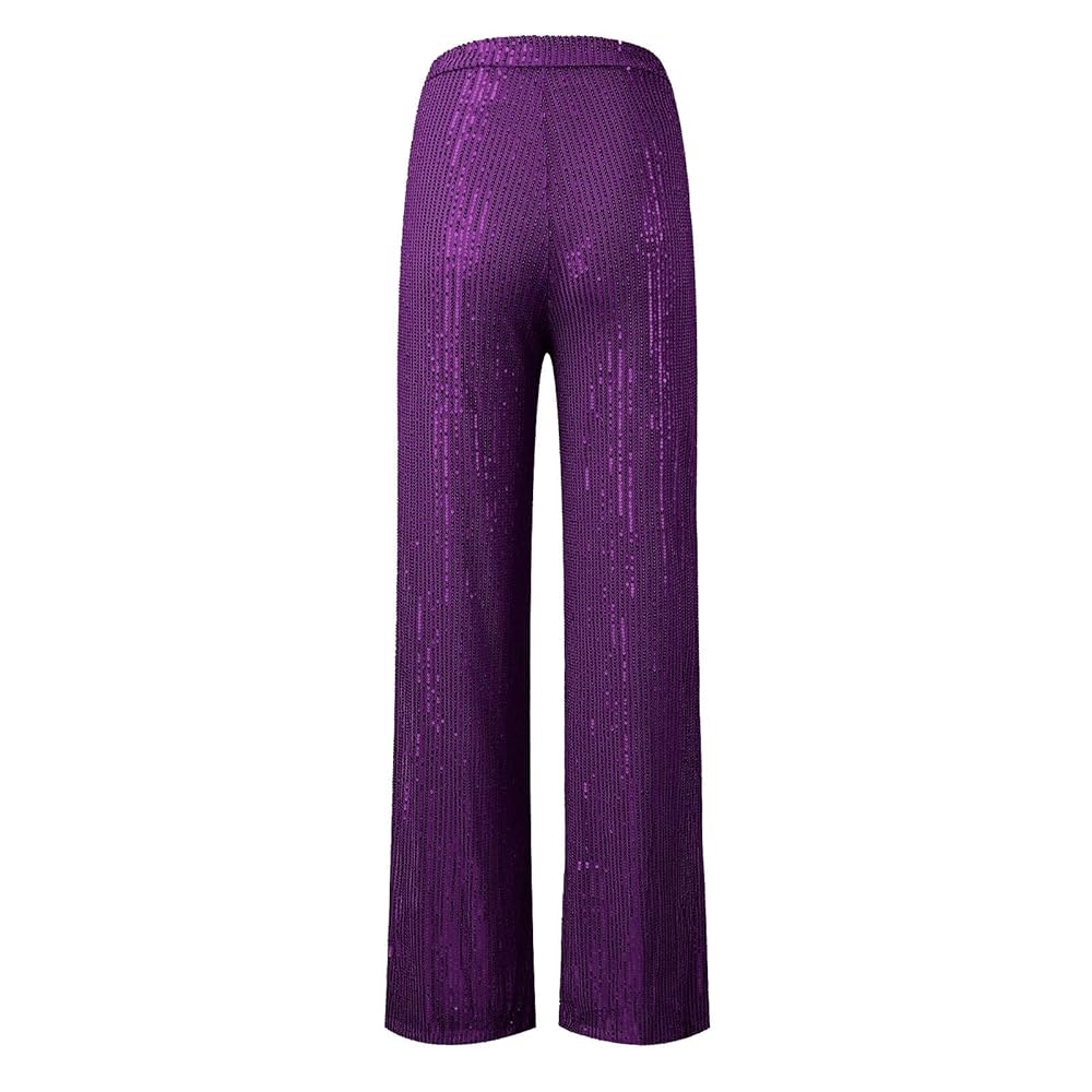 Pailletten Hose Damen Gold - High Waist Baggy Hose Mit Glitzer