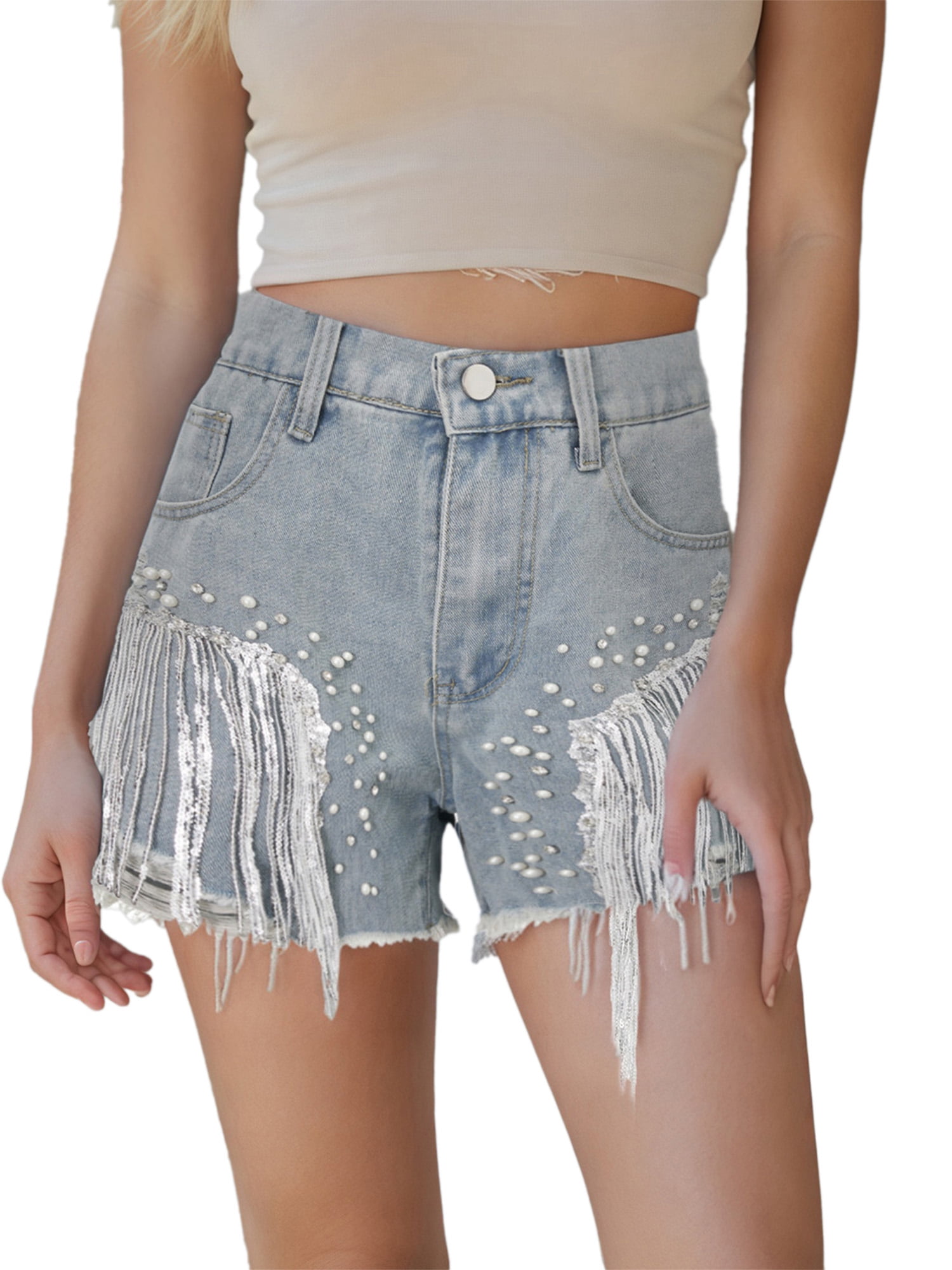 Koton Mädchen Shorts Mit Pailletten & Quasten - Indigoblau 6/7 Jahre