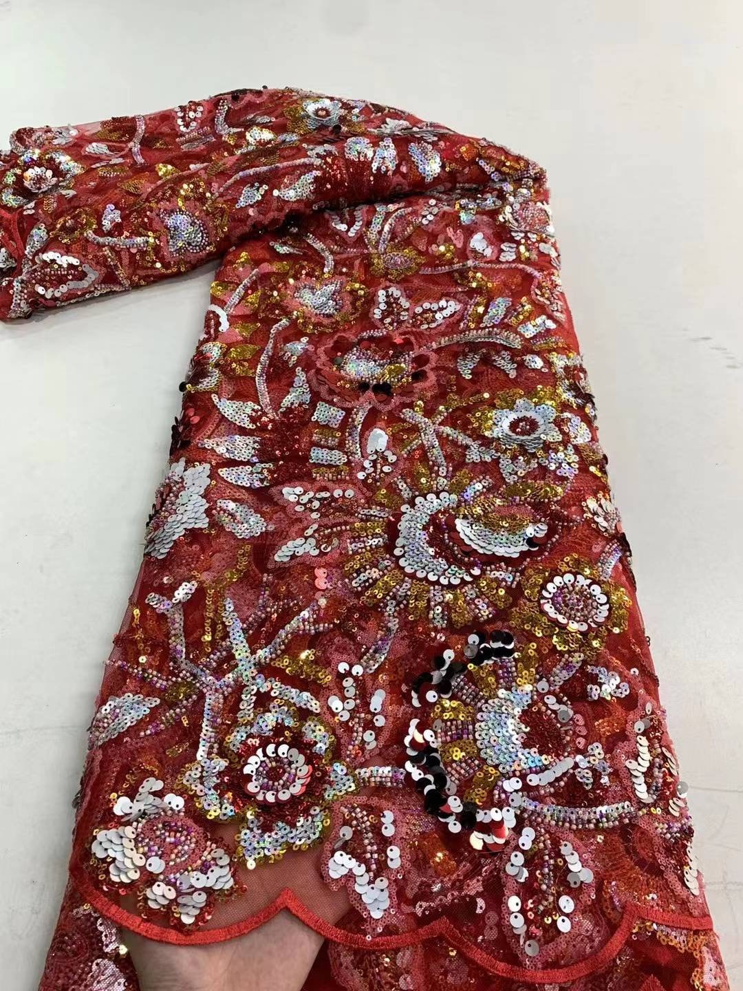 Wow, dieser Spitzenstoff ist einfach der Hammer! Mit den wunderschönen Pailletten und der 3D-Stickerei macht er jede Kreation zum absoluten Hingucker. Ob für Brautkleider, Abendmode oder romantische Heimdekoration - dieser Stoff verleiht allem eine luxuriöse Note. Aus hochwertigem Dacron gefertigt, superleicht und angenehm zu tragen. Mit den Maßen 91x125 cm hast du genug Material für deine Nähprojekte. Die nigerianische Stickerei zeigt unglaublich detaillierte Muster, die von echter Handwerkskunst zeugen. In Burgunderrot sieht der Stoff besonders edel aus, aber es gibt ihn auch in anderen tollen Farben wie Rot, Grün, Dunkelblau, Grau, Schwarz, Rosa und Champagner. Perfekt für Schleier, Vorhänge, Weihnachtsdekoration oder besondere Kleidungsstücke. Deiner Kreativität sind keine Grenzen gesetzt! Einfach traumhaft schön und qualitativ hochwertig - genau das Richtige für besondere Projekte!