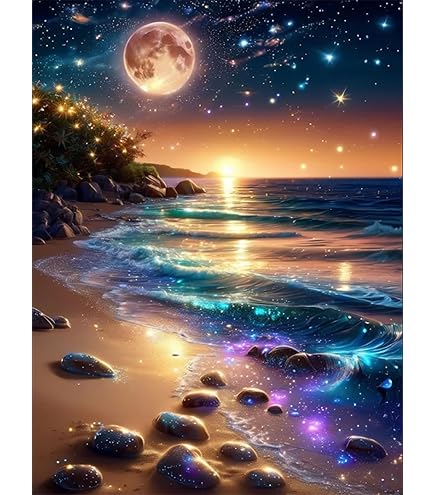 5D Diamond Painting 'Glitzer Mond & Strand' - Kreatives Bastelset Für Erwachsene & Kinder