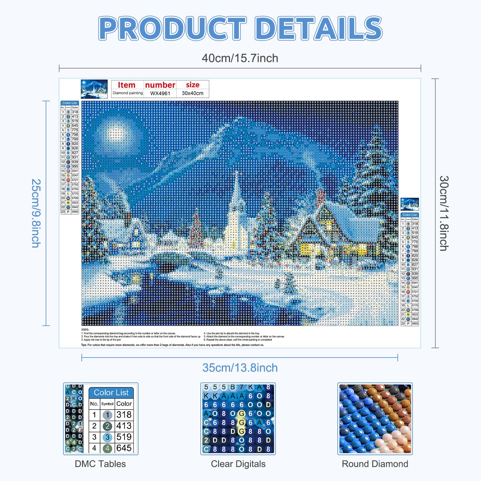 RICUVED Weihnachten Diamond Painting - 5D Winter Landschaft, DIY Set 30x40cm
