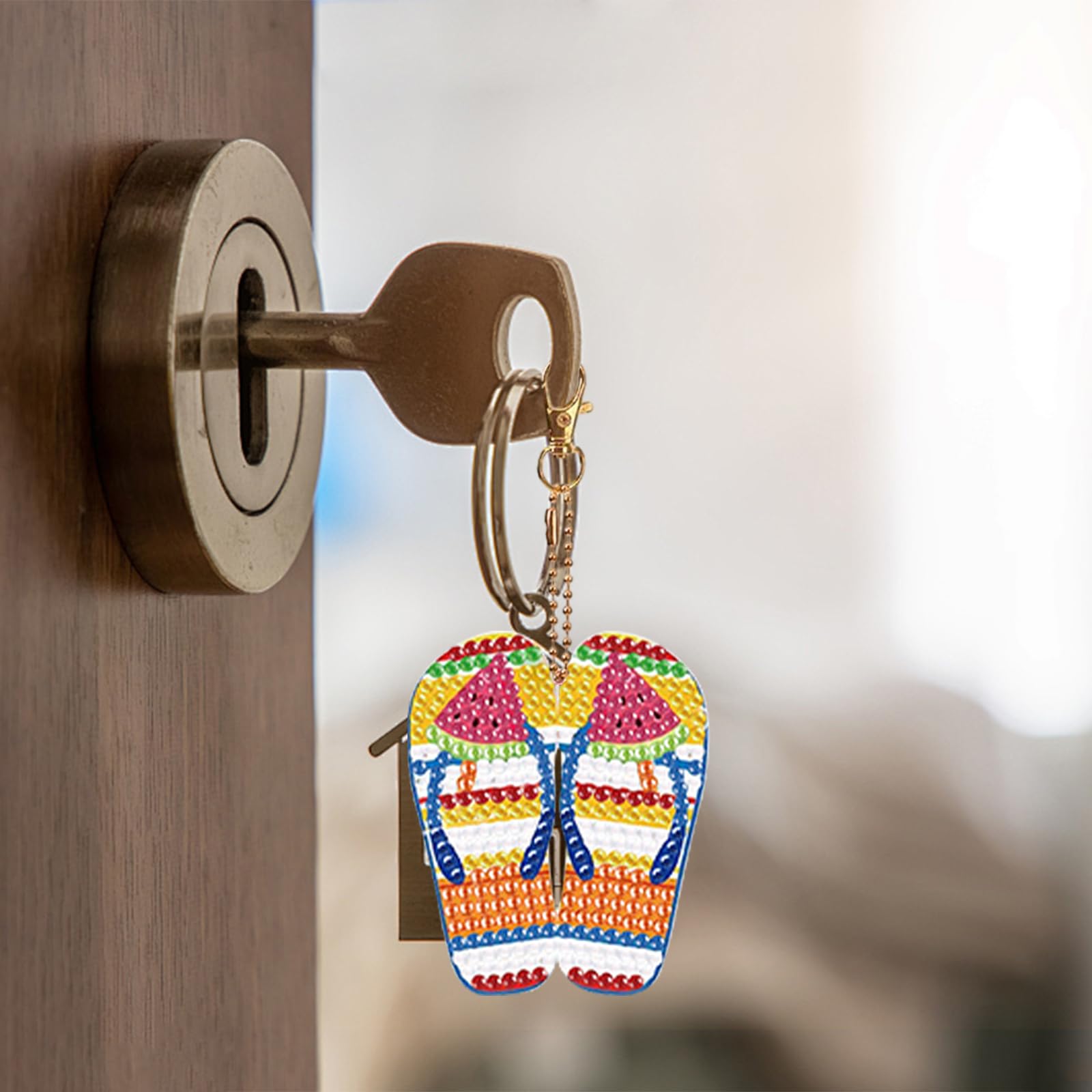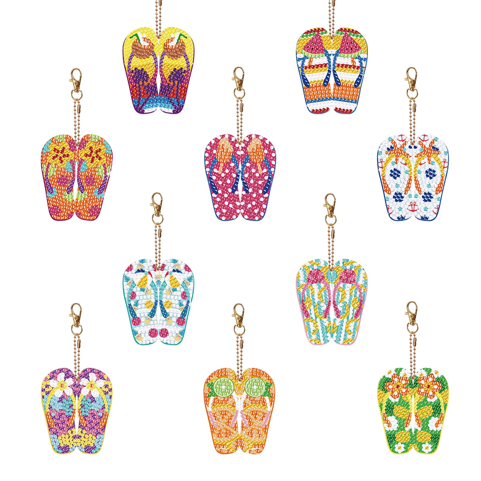 Kreativer Spaß für die ganze Familie! Dieses 15-teilige Set mit Diamond Painting Anhängern bringt Farbe in dein Leben. Die süßen Flip-Flop Designs im Sommer-Stil sind perfekt für Schlüsselbund, Rucksack oder Handtasche. Alles was du brauchst ist im Set enthalten: Acryl-Platten, Metall-Anhänger und Werkzeug.
