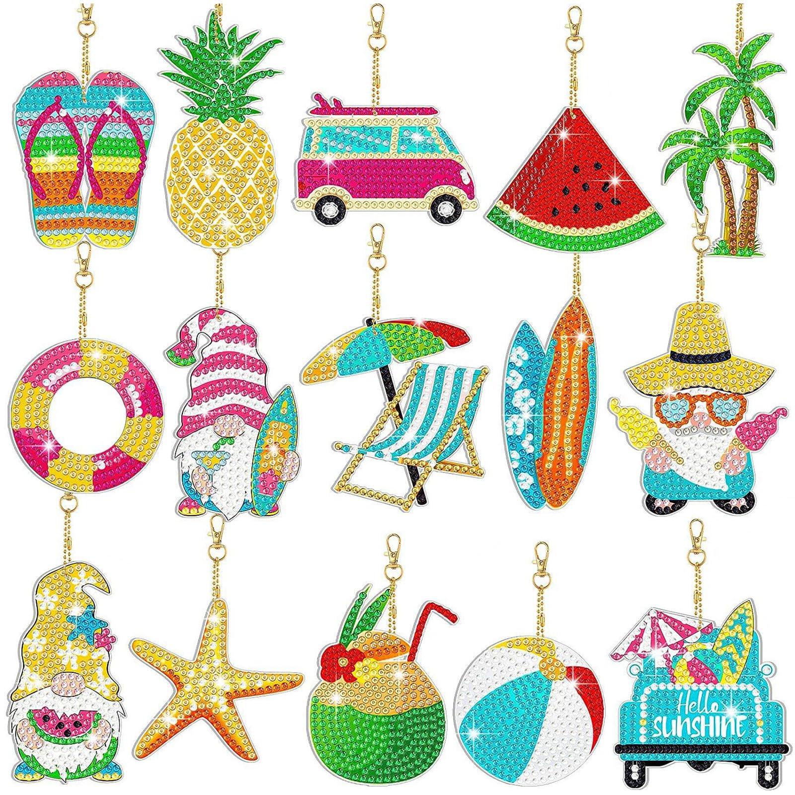 15 Stück Diamond Painting Anhänger - DIY Schlüsselanhänger Sommer Designs