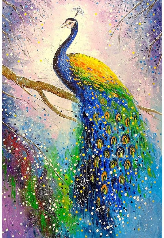 Kreative aufgepasst! Dieses Diamond Painting Set mit Pfau-Motiv bringt Glanz in dein Zuhause. 30x40 cm groß, in 5D - das bedeutet: Unglaubliche Tiefenwirkung und Brillanz! Jeder Diamant hat 17 Facetten - da glitzert es gewaltig.\n\nIm Set ist alles enthalten, was du brauchst: Hochauflösende Leinwand mit klarem Druck, sortierte Diamanten in allen benötigten Farben, Diamantstift und Tablett. Einfach die Symbole auf der Leinwand mit den passenden Diamanten bekleben - wie Malen nach Zahlen, nur viel glitzeriger!\n\nDie Anleitung ist super einfach: Codes checken, Stift vorbereiten, Diamanten aufkleben. Am Ende mit dem Lineal die Ränder glatt drücken - fertig ist dein Meisterwerk! Perfekt für entspannende Abende oder als gemeinsames Projekt mit der Familie.\n\nDas Ergebnis ist atemberaubend! Der Pfau in seinen prächtigen Farben - ein echter Hingucker für Wohnzimmer, Schlafzimmer oder Flur. Und das Beste: Die Farben verblassen nicht, der Glanz bleibt erhalten.\n\nToll als Geschenk für Geburtstage, Weihnachten oder einfach so. Für Eltern, Kinder, Kreative - einfach für jeden, der was Schönes schaffen will. Tauche ein in die Welt des Diamond Paintings - es entspannt und das Ergebnis begeistert!