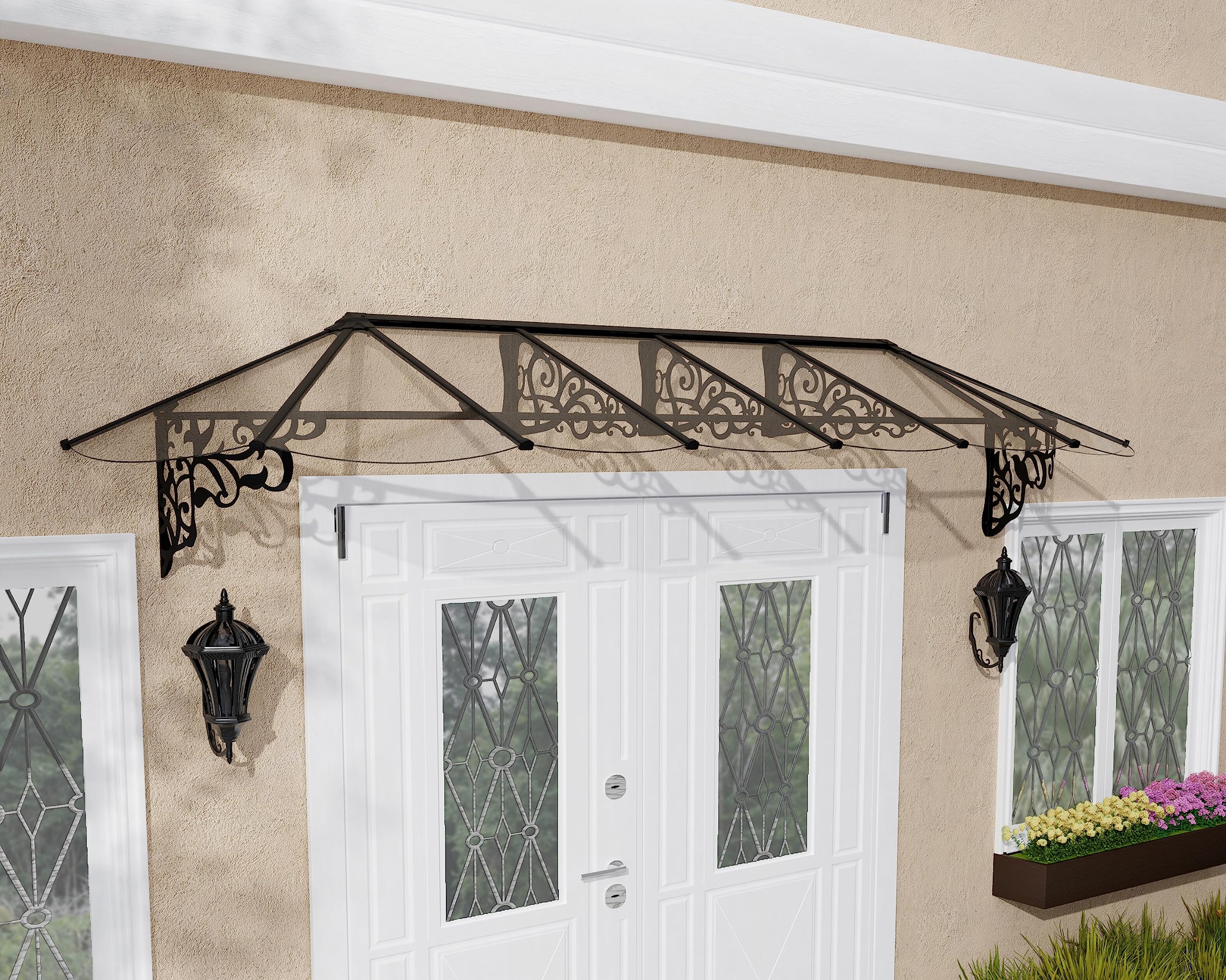 Schütze deine Haustür in stylischem Retro-Design! Dieses Canopia Lily Vordach im französischen Landhausstil ist nicht nur schön anzusehen, sondern auch extrem robust. Mit 267x88cm Größe bietet es ausreichend Schutz vor Regen und Sonne! Die rostfreie Aluminiumkonstruktion mit pulverbeschichteten Stahlstützen hält Winden bis 120km/h und Schneelasten bis 180kg/m² stand! Die kristallklaren 4mm Paneele blockieren 100% der UV-Strahlen bei 92% Lichtdurchlässigkeit. Inklusive Regenrinne und wartungsfrei - einfach montieren und jahrelang Freude haben! Perfekt für Haustüren, Garagentore oder Veranden!